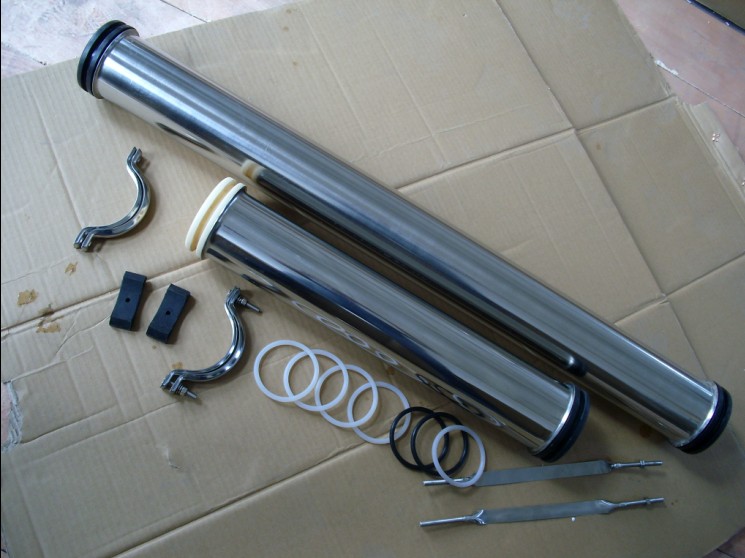 - Vỏ màng RO inox 4 inch tất cả làm bằng thép không gỉ, đánh bóng bên trong và bên ngoài vỏ màng, nước có thể vào ở cả hai đầu; Cấu trúc: các bộ phận tiêu chuẩn, tháo gỡ thuận tiện; Kín: do áp lực thử nghiệm, cả hai đầu của cấu trúc: được xây dựng trong kẹp, loại mặt bích.